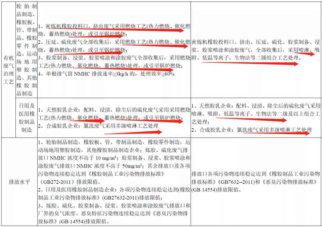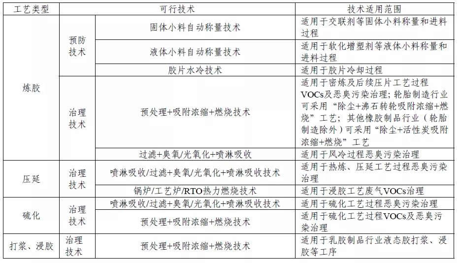下面分享橡膠制品業VOCs 污染治理可行技術組合表,如下: