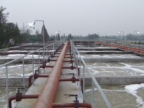 該印染廢水水質水量變化較大,屬印染綜合廢水,可生化性較差(B/C比在0.30左右),且 水的色度高,是較難處理的工業廢水之一。根據國內外的工程經驗,結合本工程水質、水量特點,我們擬采用“物化+生化”的處理工藝。由于業主單位尚未提供建 設規劃圖及廢水處理廠的用地地形等相關資料,本方案設計只能根據工藝流程要求進行布置,力求流程順暢,管線短捷,減少占地,節省投資。廢水處理廠總占地面 積3700㎡。生產區包括調節池、中和沉淀池、水解酸化池、生物接觸氧化池、二沉池、污泥濃縮池、中間水池及污泥脫水間等;輔助生產及管理區包括辦公室、 鼓風機房等。調節池為地下式(埋地),上部可作為綠化用地,站區道路兩側及各建、構筑物間空地均可作為綠化用地,以增強站區內景觀效果。